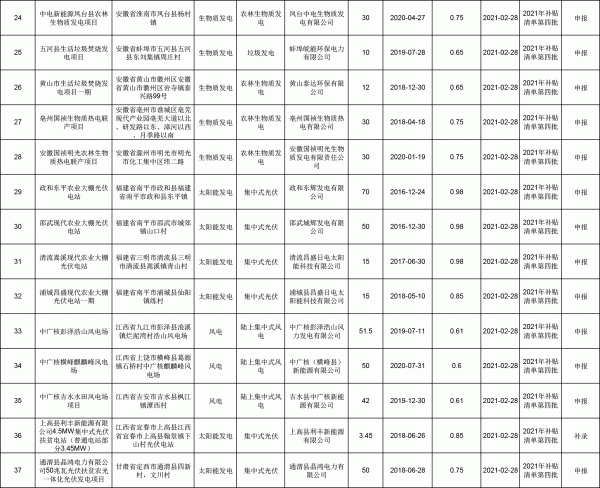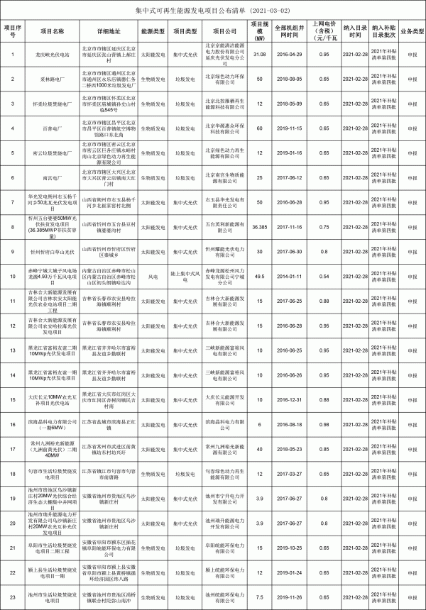 3月1日消息,國家電網日前公布2021年第四批可再生能源發電補貼項目清單,公告顯示此次納入2021年第四批可再生能源發電補貼清單的項目共計4682個,核準/備案容量5033.16MW。其中:集中式風電項目數量4個,核準/備案容量195.5MW;集中式和分布式太陽能發電項目數量分別為19個、4663個,核準/備案容量分別為527.08MW、2971.74MW;集中式生物質發電項目數量為14個,核準/備案容量分別為317.5MW。