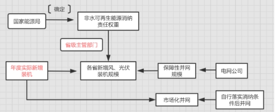 保障性并網指各地落實非水電消納責任權重所必需的新增裝機由電網企業保障并網。市場化并網指超出保障性消納規模仍有意愿并網的項目,通過自建、合建共享或購買服務等市場化方式,在落實抽水蓄能、儲熱型光熱發電、火電調峰、電化學儲能、可調節負荷等新增并網消納條件后,由電網企業保障并網。