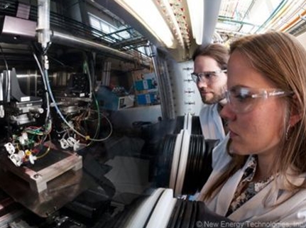 圖1. NREL科學(xué)家希瑟博士(Heather A.S. Platt)(前) 和新能源技術(shù)公司首席科學(xué)家哈蒙德博士在研究太陽能窗技術(shù)