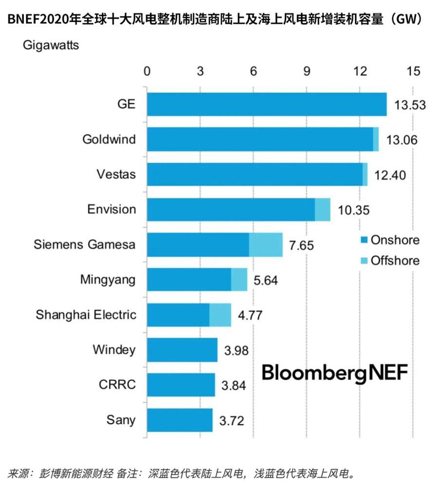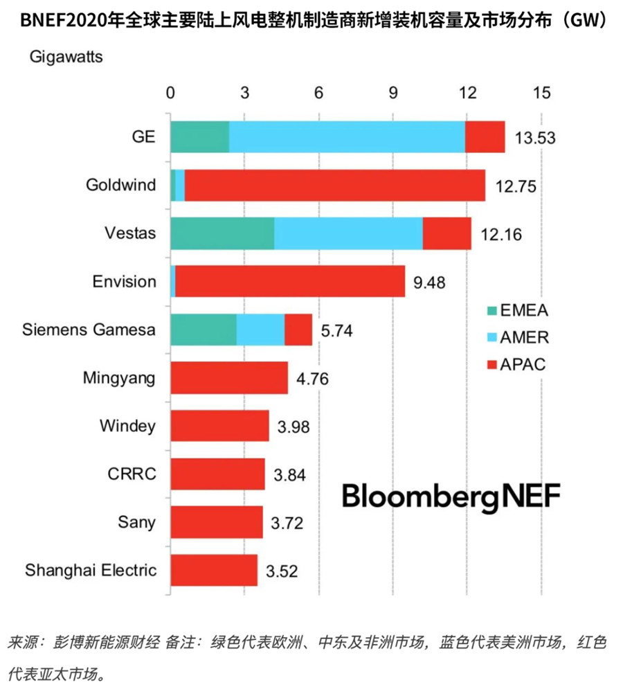 五是中車風電、三一重能歷史首次殺入全球前十。