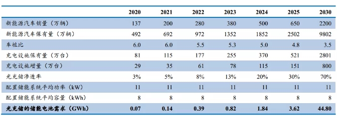 2020-2030國內(nèi)光儲充一體化儲能需求測算