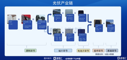 光伏分四個環節分別是原料、硅片、電池片、組件、系統四個環節;其中原料主要生產多晶硅料,是整個光伏產業鏈供給的源頭,其中上市的企業包括保利協鑫能源、通威股份等。