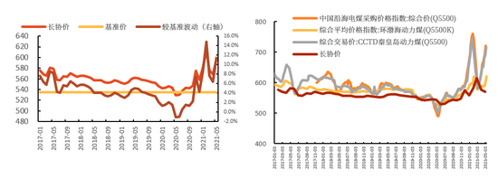 我們根據發改委《關于做好2021年煤炭中長期合同簽訂履行工作》的通知,神華集團、中煤集團等上市公司公告及網絡公開資訊,確定煤企長協煤定價的公式。