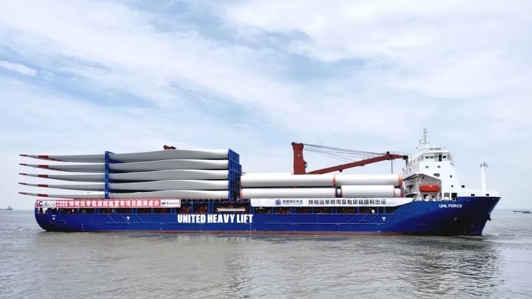 近日,裝載遠景能源EN-156/4.5和EN-156/3.3智能風機的運輸船,分別從中國江蘇常熟港和太倉港啟航。6月底前,共計300多臺遠景能源智能風機將陸續從這兩個港口發往越南。
