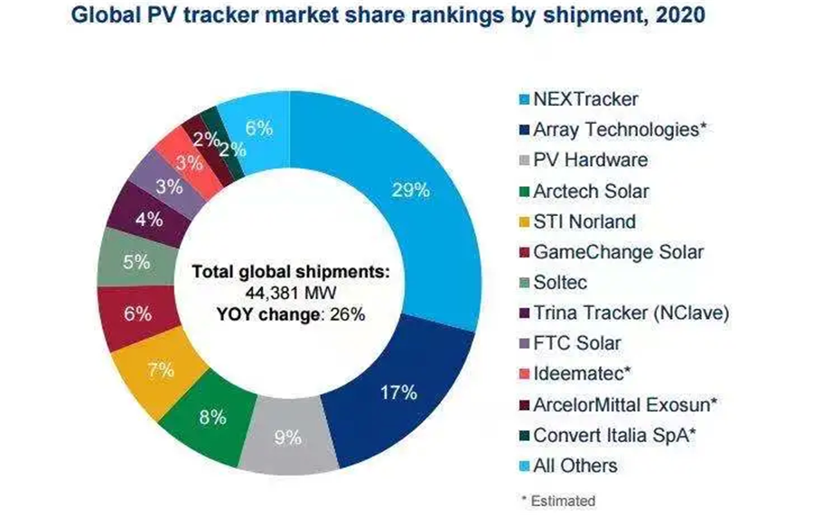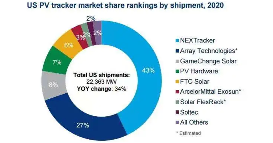 圖片:2020年美國市場光伏跟蹤支架出貨排名 來源:伍德麥肯茲