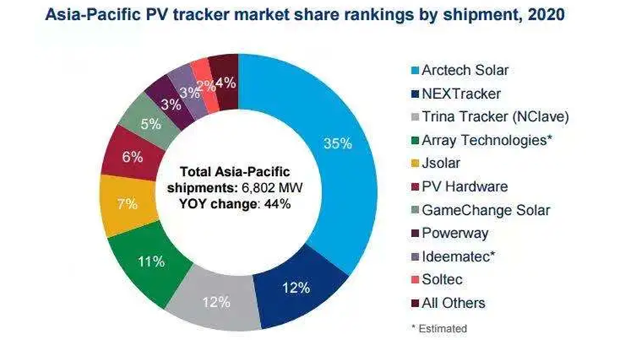 圖片:2020年亞太市場光伏跟蹤支架出貨排名 來源:伍德麥肯茲