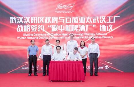 活動現場,武漢市漢陽區政府與百威亞太簽署了“碳中和啤酒廠”戰略協議,雙方就共繪武漢碳中和藍圖交流了經驗,表達了信心和決心。據悉,武漢工廠生產的首批“碳中和”啤酒也在本次活動上正式亮相。