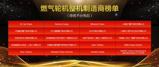 全球燃氣輪機制造商老牌三巨頭、國內三大動力集團及國內外部分新興燃氣輪機制造商共計20家企業上榜。