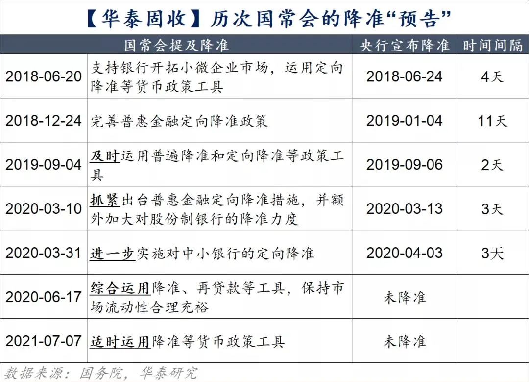 盡管此次國常會提降準超預期,但從歷次國常會對于降準的表態(tài)看,國常會提到降準并不意味著降準在會后會很快落地。