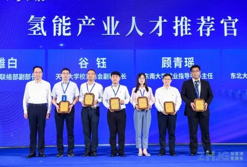 接著韓衛(wèi)市長又向浙江大學(xué)對外聯(lián)絡(luò)部副部長沈雄白、南京大學(xué)化學(xué)化工學(xué)院教授許波連、天津大學(xué)校友總會副秘書長谷鈺、東南大學(xué)就業(yè)指導(dǎo)中心主任顧青瑤、東北大學(xué)校友總會副秘書長高廣、蘇州大學(xué)能源學(xué)院教授韓東麟等六位高校教授和相關(guān)部門負(fù)責(zé)人分別頒發(fā)了張家港市氫能產(chǎn)業(yè)人才推薦官聘書。