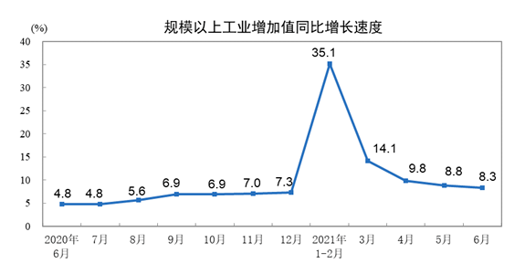 工業生產方面,上半年,全國規模以上工業增加值同比增長15.9%,兩年平均增長7.0%,比一季度加快0.2個百分點;二季度同比增長8.9%。高技術制造業增速亮眼,上半年增加值同比增長22.6%。