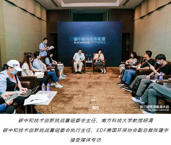 在本次會(huì)議期間,碳中和技術(shù)創(chuàng)新挑戰(zhàn)賽組委會(huì)主任、南方科技大學(xué)教授胡清及碳中和技術(shù)創(chuàng)新挑戰(zhàn)賽組委會(huì)執(zhí)行主任、EDF美國(guó)環(huán)保協(xié)會(huì)北京代表處首席代表張建宇就關(guān)于碳中和技術(shù)創(chuàng)新挑戰(zhàn)賽一系列相關(guān)問題接受了來自行業(yè)媒體的專訪,以下內(nèi)容為中國(guó)能源網(wǎng)根據(jù)采訪實(shí)錄整理而成。