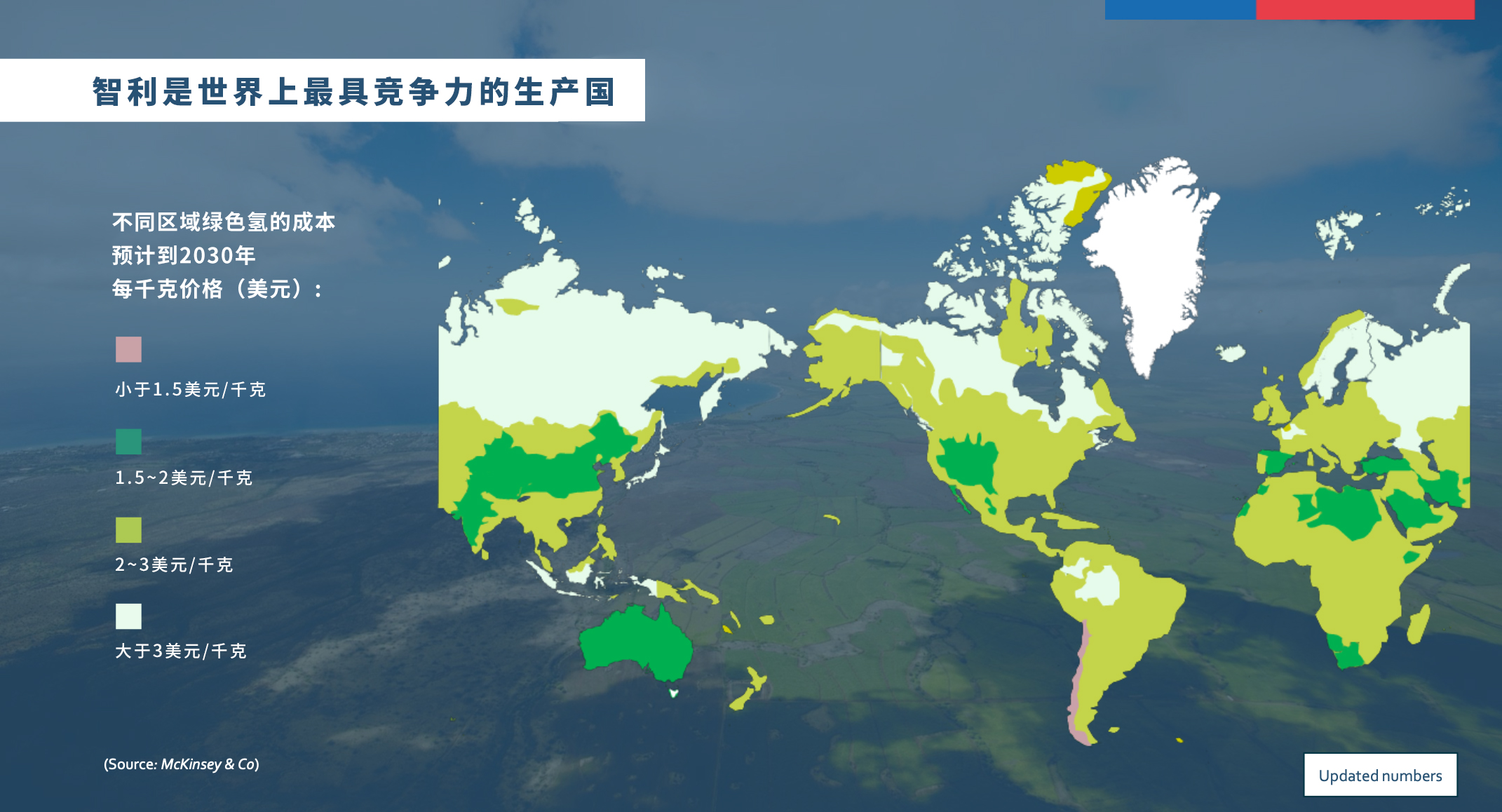 “發展綠色氫,智利擁有得天獨厚的地理優勢!”智利駐華大使館商務參贊娜塔女士在采訪中反復強調道。作為綠色氫發展的先決條件,可再生能源資源的優劣是決定綠色氫發展成敗的關鍵因素。