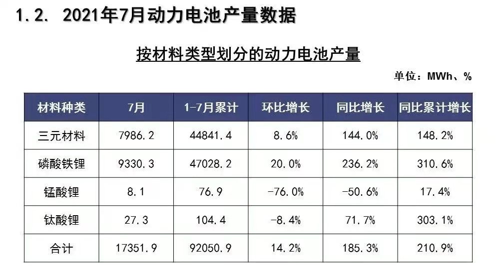 今年前7個(gè)月,動(dòng)力電池領(lǐng)域的磷酸鐵鋰電池總產(chǎn)量也已超過三元電池。2018年-2020年,國內(nèi)磷酸鐵鋰電池的年產(chǎn)量均低于三元電池。