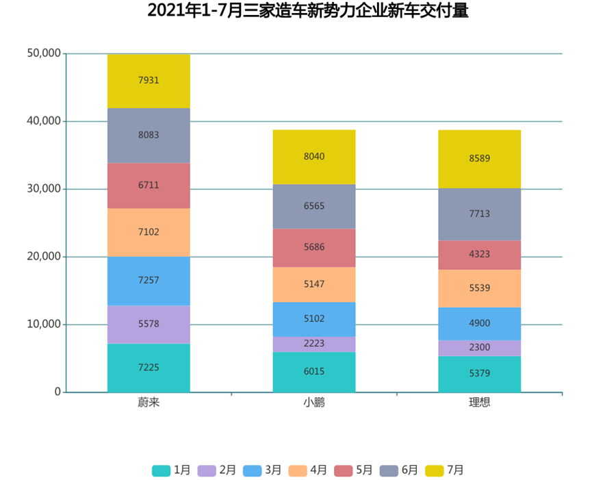 最近公布的(未計(jì)入Q2)7月份交付數(shù)據(jù)更是令人大跌眼鏡:蔚來(lái)直接被理想、小鵬反超,三者的交付數(shù)據(jù)分別是7,931輛、8,589輛、8,040輛。