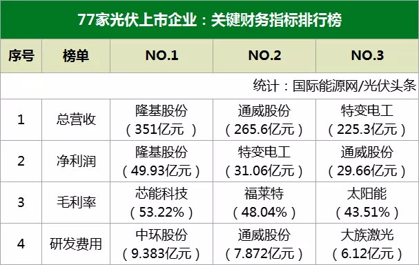 77家光伏企業(yè)凈利潤(rùn)前三:隆基股份(49.93億元) 、特變電工(31.06億元)、通威股份(29.66億元)