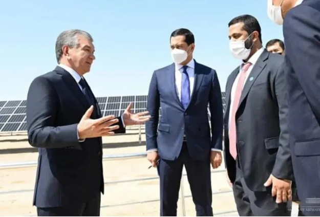 烏茲別克斯坦總統沙夫卡特•米爾濟約耶夫出席電站并網儀式并親手合上電閘