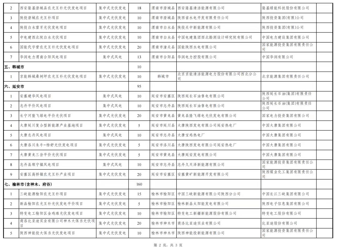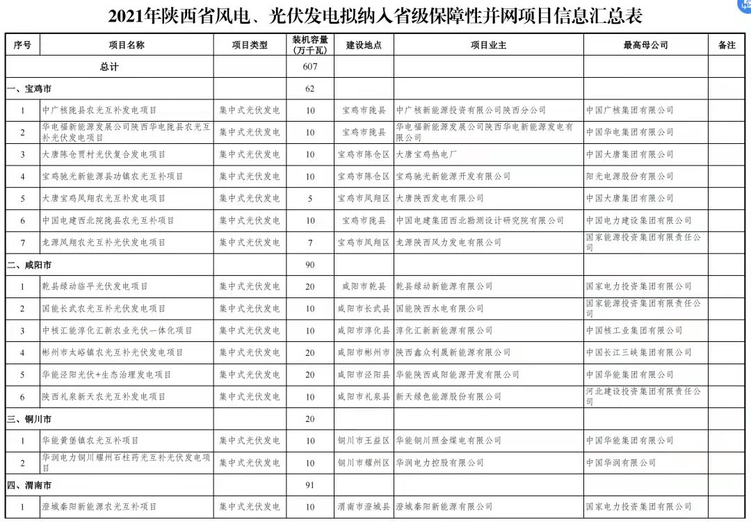 關于陜西省2021年風電、光伏發(fā)電保障性并網(wǎng)項目競爭性配置結果的公示