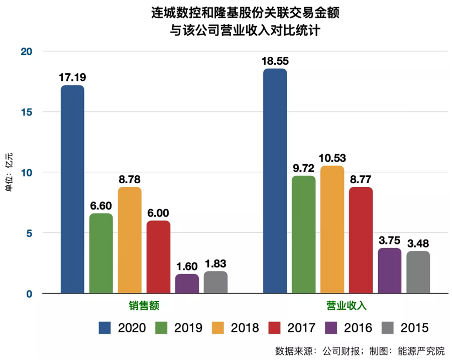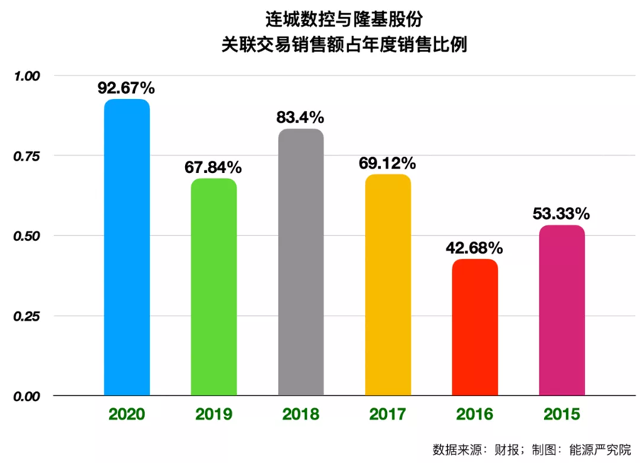 而根據(jù)連城數(shù)控2020年年報,該公司與隆基股份的關(guān)聯(lián)交易金額則為17.19億元,占該公司銷售額的比例高達92.67%。