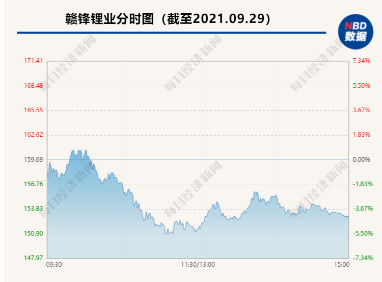 截至9月29日收盤,寧德時代報收502.51元,漲0.42%,總市值11703億元;贛鋒鋰業報收152.97元,跌4.21%,總市值2199億元。