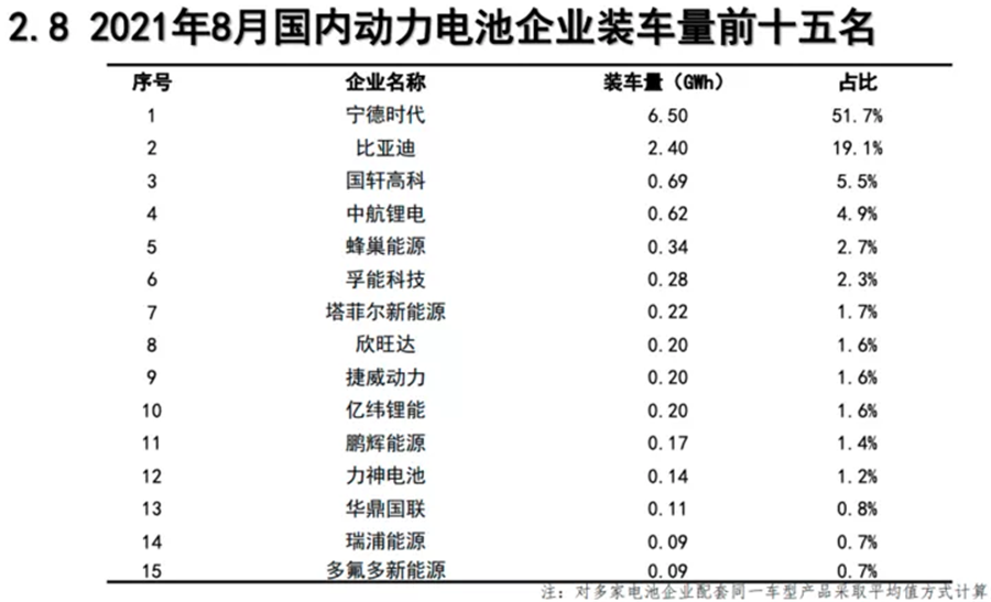 同比來看,中國企業寧德時代、比亞迪、中航鋰電、國軒高科、蜂巢能源均實現三位數增長,遠高于市場平均水平,市占率進一步提升。