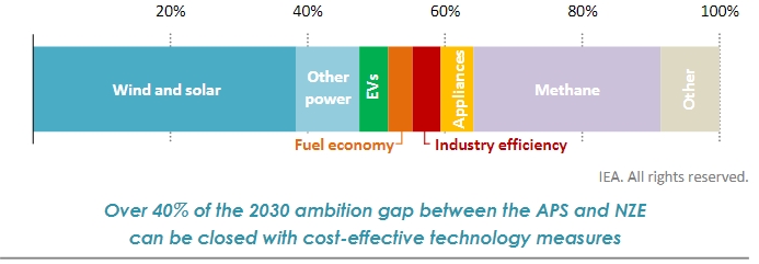 2030年已宣布的承諾方案中和凈零排放情景之間超過40%的目標差距可以通過具有成本效益的技術措施來彌補