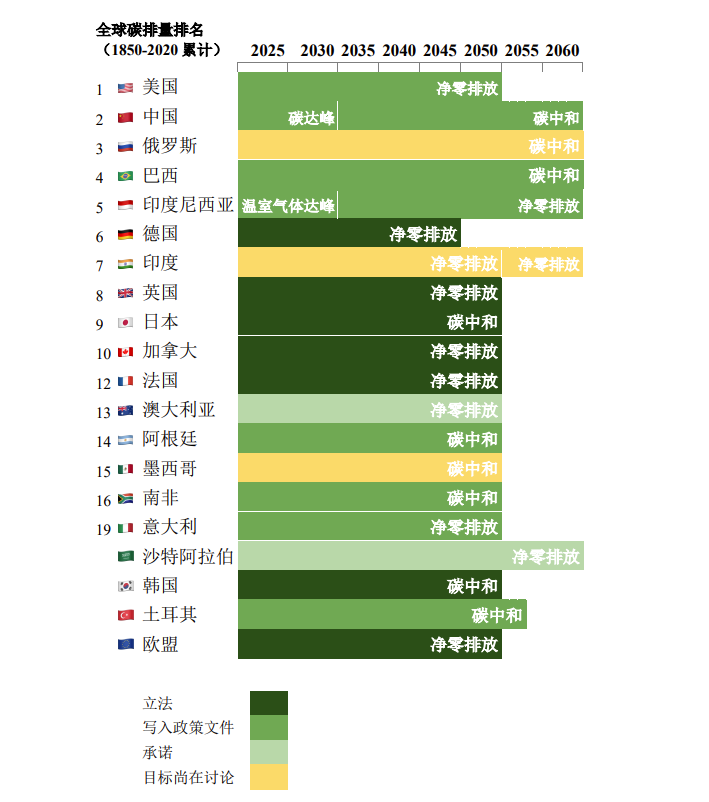 G20國家國內(nèi)碳排承諾概覽