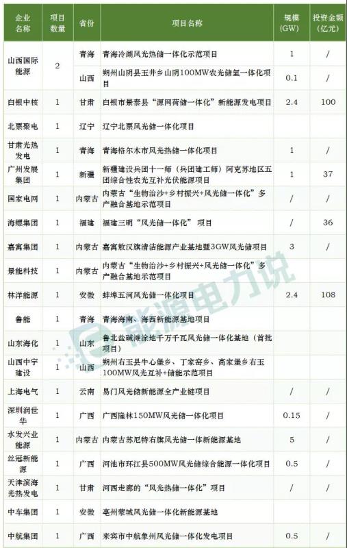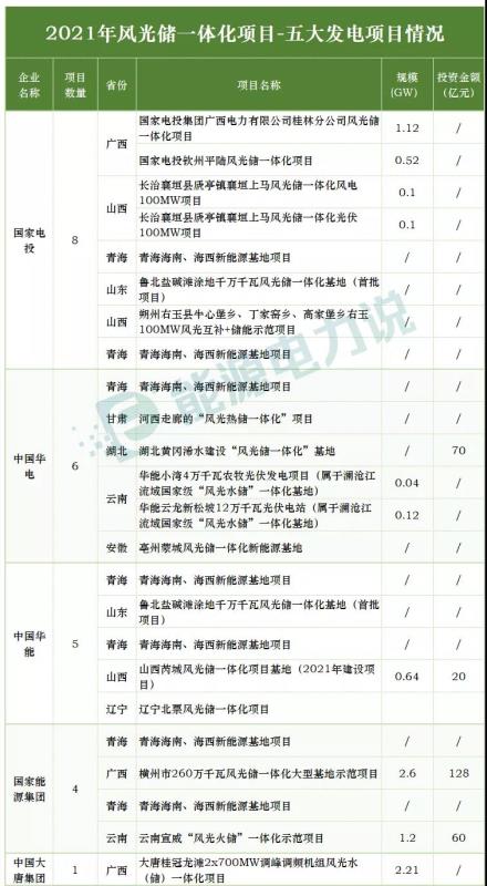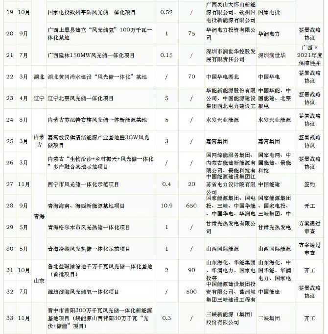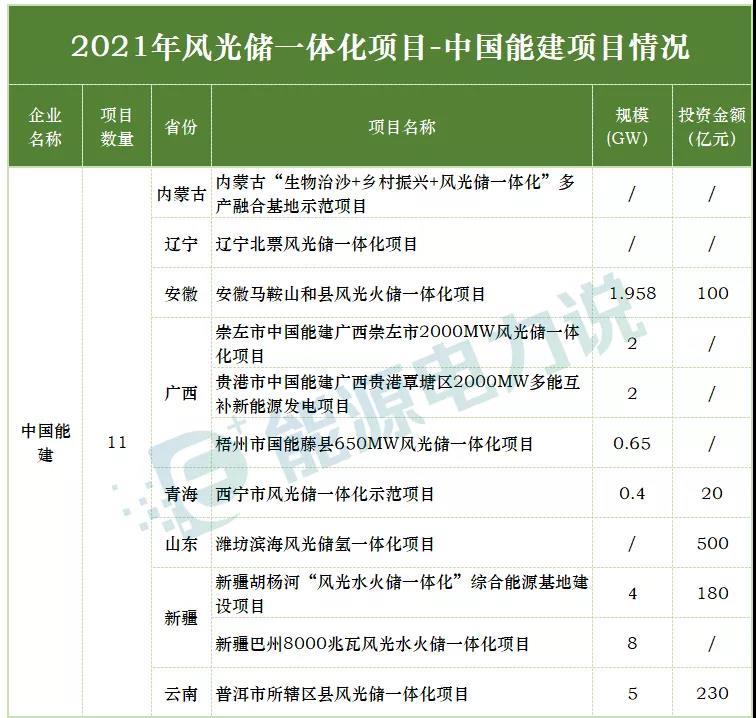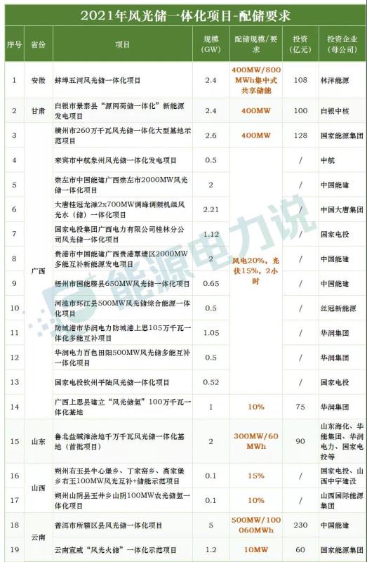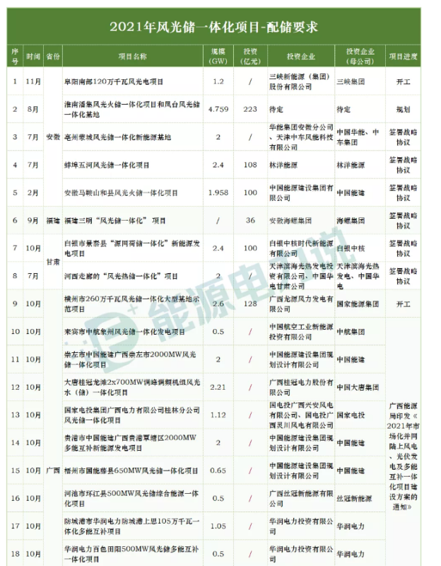 2021年有哪些省份已明確風光儲一體化落地項目?項目規模如何?都有哪些企業參與投資建設?儲能配置要求如何?