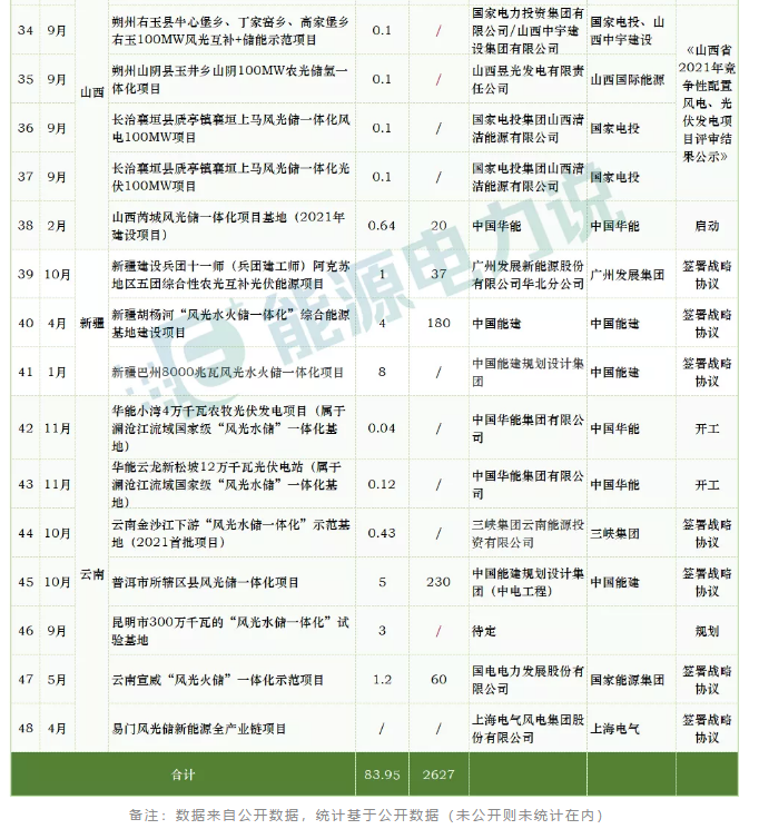 48個風光儲一體化項目,總規模超過80GW,投資金額超2600億元。