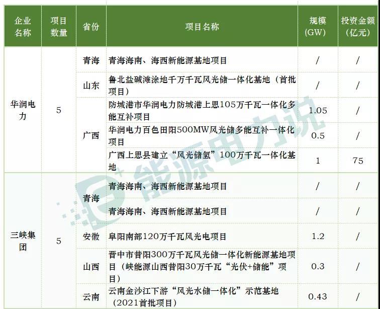 六小豪門的代表的華潤電力、三峽集團各涉及5個項目。