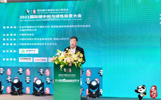 2021年11月08日,在國家生態環境部應對氣候變化司、國家能源局新能源和可再生能源司指導下,由中國投資協會、中國科學院大學應急管理學院及落基山研究所聯合主辦,中國投資協會能源投資專委會承辦的“2021國際碳中和與綠色投資大會”在上海成功舉辦。作為第四屆中國國際進口博覽會的高規格配套活動,本次大會受到了來自亞洲、歐洲、美洲各主要國家的支持,邀請了包括世界500強的企業的高層以及來自國內外科研院所、行業協會、金融機構等機構的能源行業專家和精英人士,以線上線下結合的方式共同探討了“雙碳目標”背景下和綠色投資引領下的零碳科技創新與零碳產業發展。本次大會由中國網、華數TV、新浪新聞、優酷等12家媒體提供了同步直播,累計近千萬人次在線參與了此次大會!