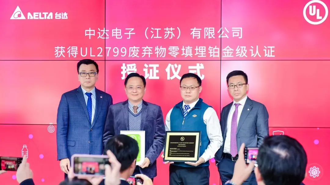 中達(dá)電子 UL 2799廢棄物零填埋鉑金級(jí)認(rèn)證頒證儀式