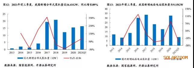 從中國光伏行業協會報告可見,2018年光伏裝機量同比下滑,2019年跌進谷底。時至今日,2021年國內的年度光伏新增裝機規?;驅⒒氐?017年水平。