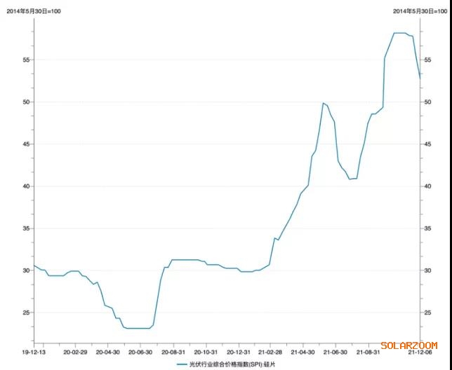 Solarzoom數據顯示,從2020年初至今,硅片價格指數上漲了75.53%,同期的光伏組件價格指數漲幅僅為9.88%。