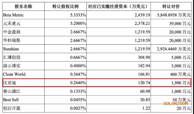 2020年9月,天眼查顯示,阿特斯發生工商變更,公司20.41%股權轉讓給了12位投資人。其中既有公司的員工持股平臺,也有比亞迪(002594.SZ)這樣的新能源巨頭,還有一批外部投資基金。