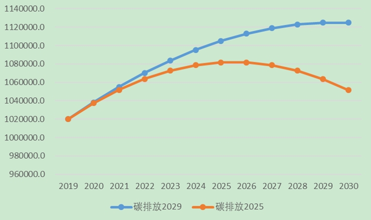 圖4 全國2025年和2029年碳達峰的碳排放量(單位:萬噸)
