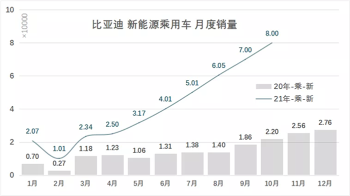 2021年比亞迪新能源銷量回顧