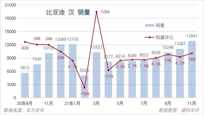 2020年11月,比亞迪漢成為中國品牌第一款售價在20-30萬元區間、月銷過萬的車型。