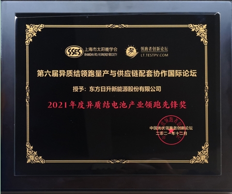 異質結電池產業年度獎項的評選旨為表彰異質結產業鏈領跑企業在技術創新、示范應用、量產推廣等方面作出的卓越貢獻。2021年12月16日,在TUV南德權威認證下,東方日升宣布高效異質結系列組件最高功率達到721.016W,組件效率高達23.65%,這是公司一年內第三次刷新自己創造的異質結世界紀錄。作為較早布局N型異質結技術的光伏企業,東方日升以技術升級引領行業進步,以領先優勢高筑公司N型技術護城河,“領跑先鋒”即是對公司創新實力的最佳褒獎。