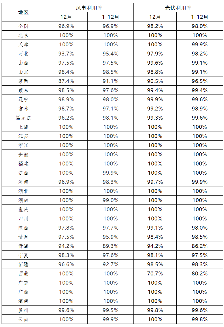 今日,全國新能源消納監測預警中心發布2021年12月全國新能源并網消納情況。
