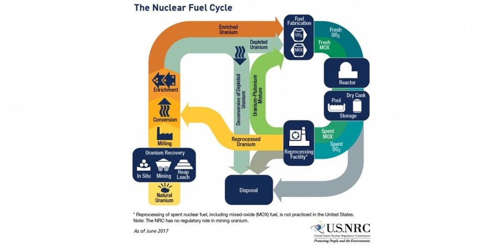 US NRC核燃料循環(huán)圖示(美國(guó)在乏核燃料后處理,包括混合-氧化物燃料方面,沒(méi)有經(jīng)驗(yàn))。