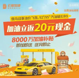 一直致力于打造全球領先的智能汽車生態(tài)圈消費服務平臺的云油加油,為解決油價上漲給全國近4億車主所帶來的油費支出壓力,將在近期送出8000萬加油補貼,車主用戶即加即送,送完即止。據(jù)工作人員透露,即日起,云油加油新用戶首次加油立返20元現(xiàn)金補貼,還可疊加會員立返3%-5%加油優(yōu)惠;3月11日零點起,使用云閃付充值,還有機會立減20元,數(shù)量有限,先到先得。