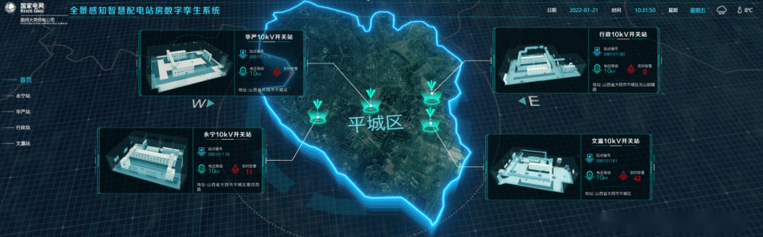 2021年8月,為助力山西省電力公司推進電網數(shù)字化轉型,建設可復制的數(shù)字化、遠程運維的智慧配電房樣板,國網大同供電公司與平高集團聯(lián)合開展全景感知智慧配電站房示范項目建設。根據(jù)大同供電公司配電網運維現(xiàn)狀,首批選取永寧、華嚴、行政、文瀛等4座10kV配電站房進行試點建設。項目通過在試點開關站房內集成智能巡檢機器人、煙感、智能門禁、溫濕度監(jiān)測、風機照明控制、視頻監(jiān)控等智能監(jiān)測與控制設備,在控制中心部署平高自主開發(fā)的基于數(shù)字孿生的智慧站房云管控系統(tǒng),實現(xiàn)站內設備、環(huán)境全面監(jiān)控,將人工定期巡檢轉變?yōu)橹悄苎b置常態(tài)化巡檢。