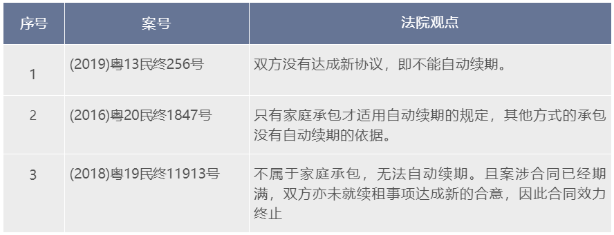 根據(jù)上述法律規(guī)定,耕地、林地還有草地都可以延長(zhǎng),但法律并沒(méi)有規(guī)定魚(yú)塘是否可以自動(dòng)延長(zhǎng)。此外,前述法律規(guī)定的自動(dòng)續(xù)期,均只限于家庭承包的方式。從廣東地區(qū)司法實(shí)踐的角度,也是不支持魚(yú)塘承包合同可以自動(dòng)續(xù)期的。