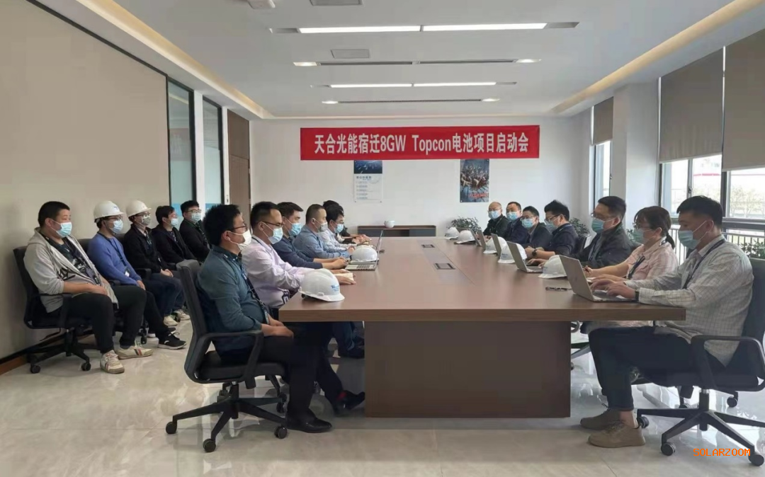 2022年4月8日,天合光能股份有限公司于江蘇宿遷生產基地召開“宿遷8GW TOPCon電池項目啟動會”。在啟動會上,項目組成員確定了本次8GW TOPCon電池項目的工作內容,強調了重點工作要求、各部門職責分工以及工作進度安排等事項,項目計劃將在2022年下半年投產。