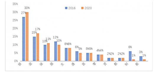 圖-2016與2020年SAS銷售收入來源的應(yīng)用行業(yè)結(jié)構(gòu)對(duì)比
