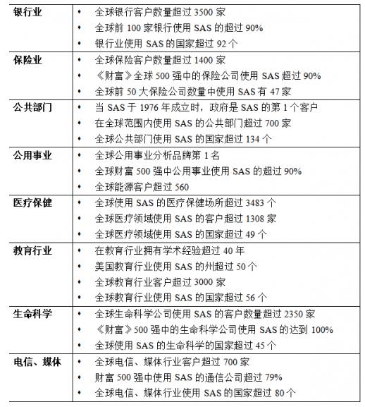 圖表-SAS在全球重點(diǎn)應(yīng)用領(lǐng)域的卓越表現(xiàn)
