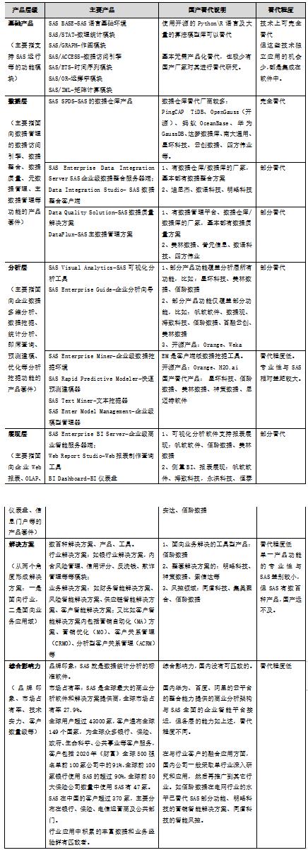 圖-SAS軟件產(chǎn)品體系及國(guó)產(chǎn)替代程度