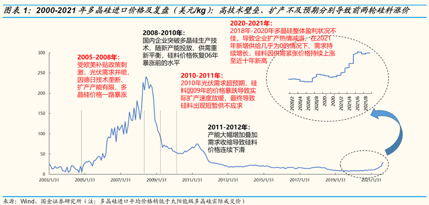 只可惜,產(chǎn)線建了一半,2018年國家便宣布了明確對光伏建設(shè)控規(guī)模、降補貼的531新政,行業(yè)一片哀嚎。此后相當(dāng)長一段時間里,硅料的價格都持續(xù)在低位,到了2020年硅料的價格,更是一度降到了僅80元每公斤的歷史低價。