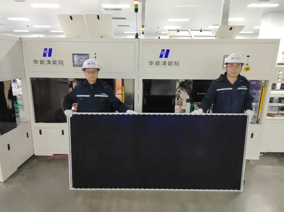 世界首塊大尺寸全國產(chǎn)矩陣疊片光伏組件“華能黑板”